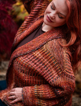 A deep marled garter hem and cuffs anchor the design, and the oversized garter shawl collar brings just the right amount of structure. We also include a video guide to help you choose and blend colors for smooth transitions and your own custom palette.